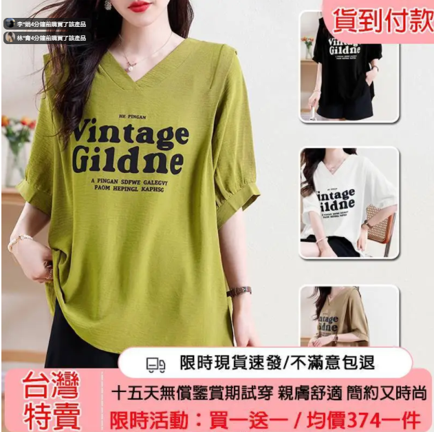 12分鐘前韓式寬鬆字母T卹【限時:買1送1】時尚百搭 藏肉顯瘦 寬鬆舒適 不起球不褪色!最大碼可以穿到100公斤 - 超夯下殺 每個客戶僅限一單【六入組】 買三送三 NT$1698 均價283